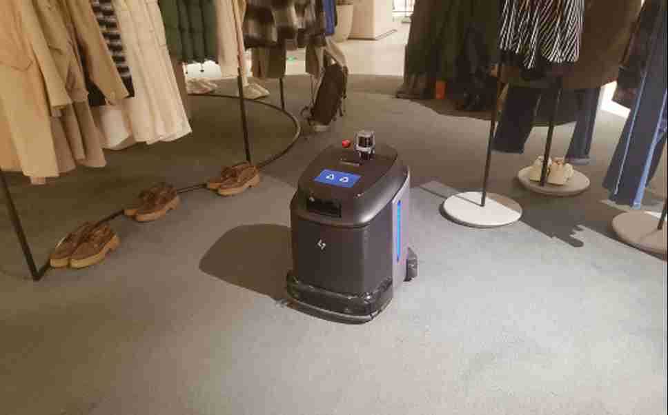 门店采用租用清洁机器人业务模式,,保洁员配合机器人,,保障清洁质量,,落实人+机结合清洁理念。。。。由1台清洁机器人每日定时多次进行洗地、、、、尘推、、吸尘及清扫作业。。。保洁人员配合进行垂直清洁及边角清洁。。。机器人释放180H/月的工时,,相当于1-1.5个岗位。。按时薪25元/小时算,,,,释放工时价值:¥4500/月。。。